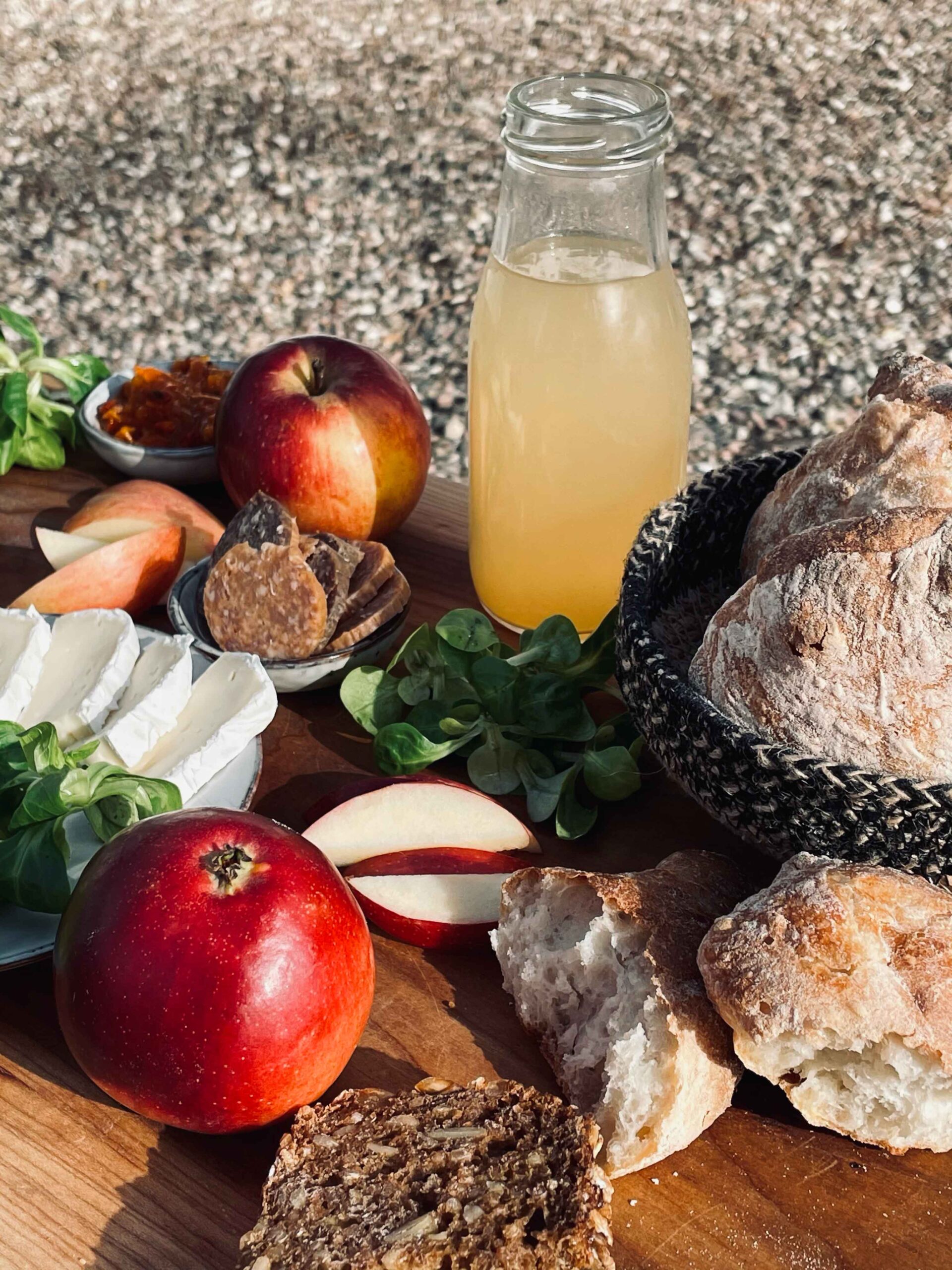 Alt dette serveres med friskbagt brød, frugt, ubegrænset kaffe og te, samt et glas forfriskende æblemost.